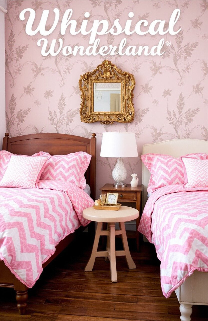 Soft pinks and purples create a dreamy, whimsical feel. The batik chevron pattern adds a playful touch.