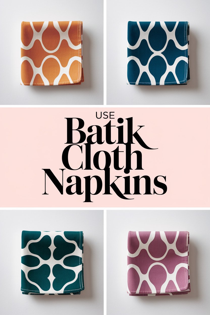 Your table can tell a story with batik cloth napkins as part of your place settings. Fold the napkins into unique shapes like fans or triangles to create an eye-catching centerpiece. It’s a simple way to elevate a casual dinner into something truly memorable.