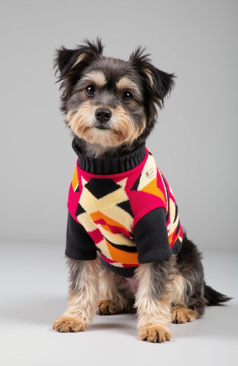 For the modern dog, these bold geometric shapes in bright colors are eye-catching. It’s like a modern art piece on a sweater.