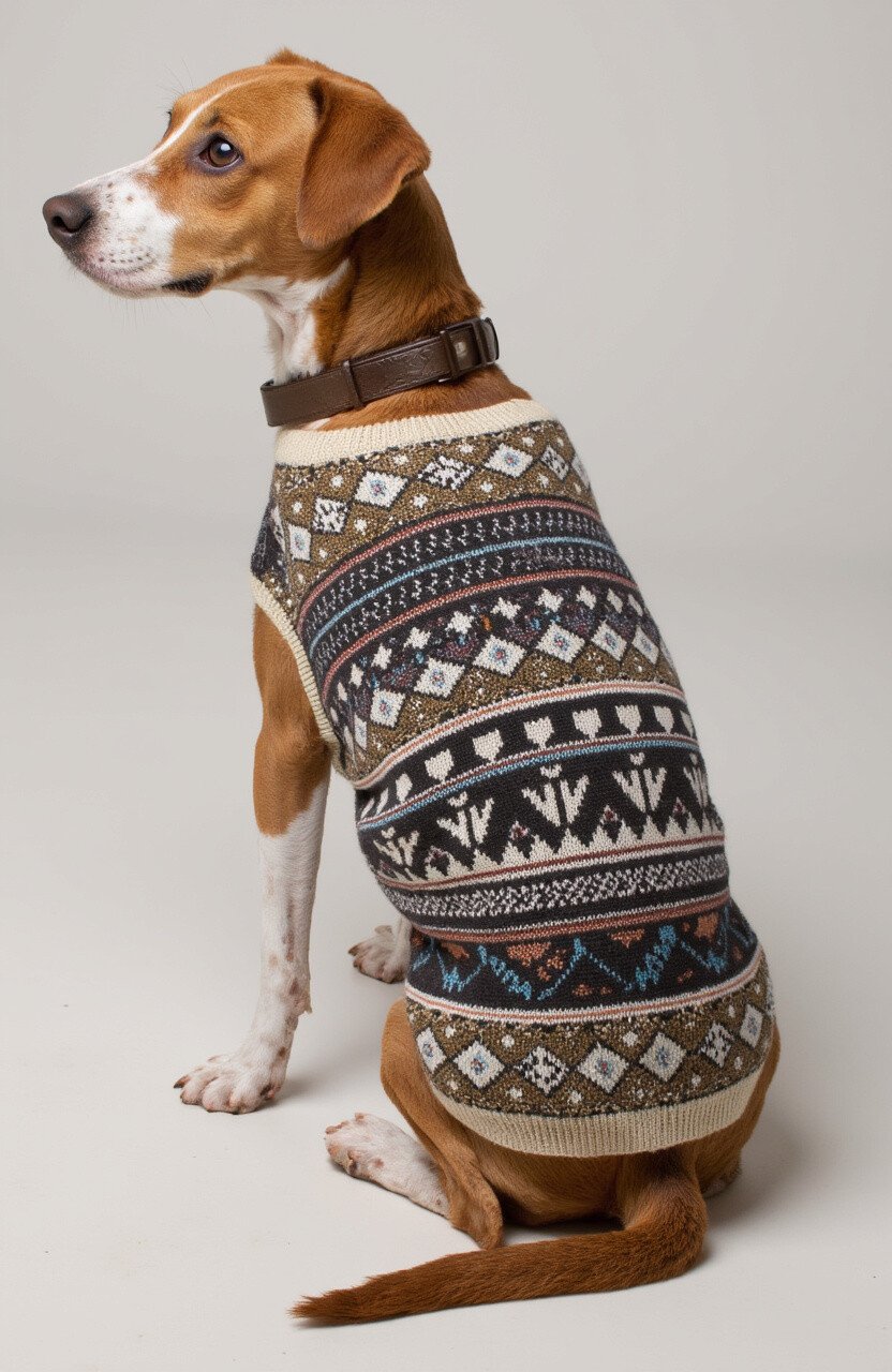 This sweater is for the adventurous pup. The earthy tones and tribal patterns make it perfect for exploring the outdoors.