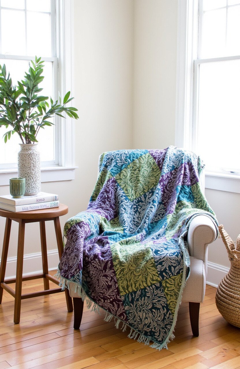 It’s like having a giant painting without the hefty price tag. You can change the throw with the seasons or your mood. Use clips or a curtain rod to hang it up, making it easy to switch out whenever you want.