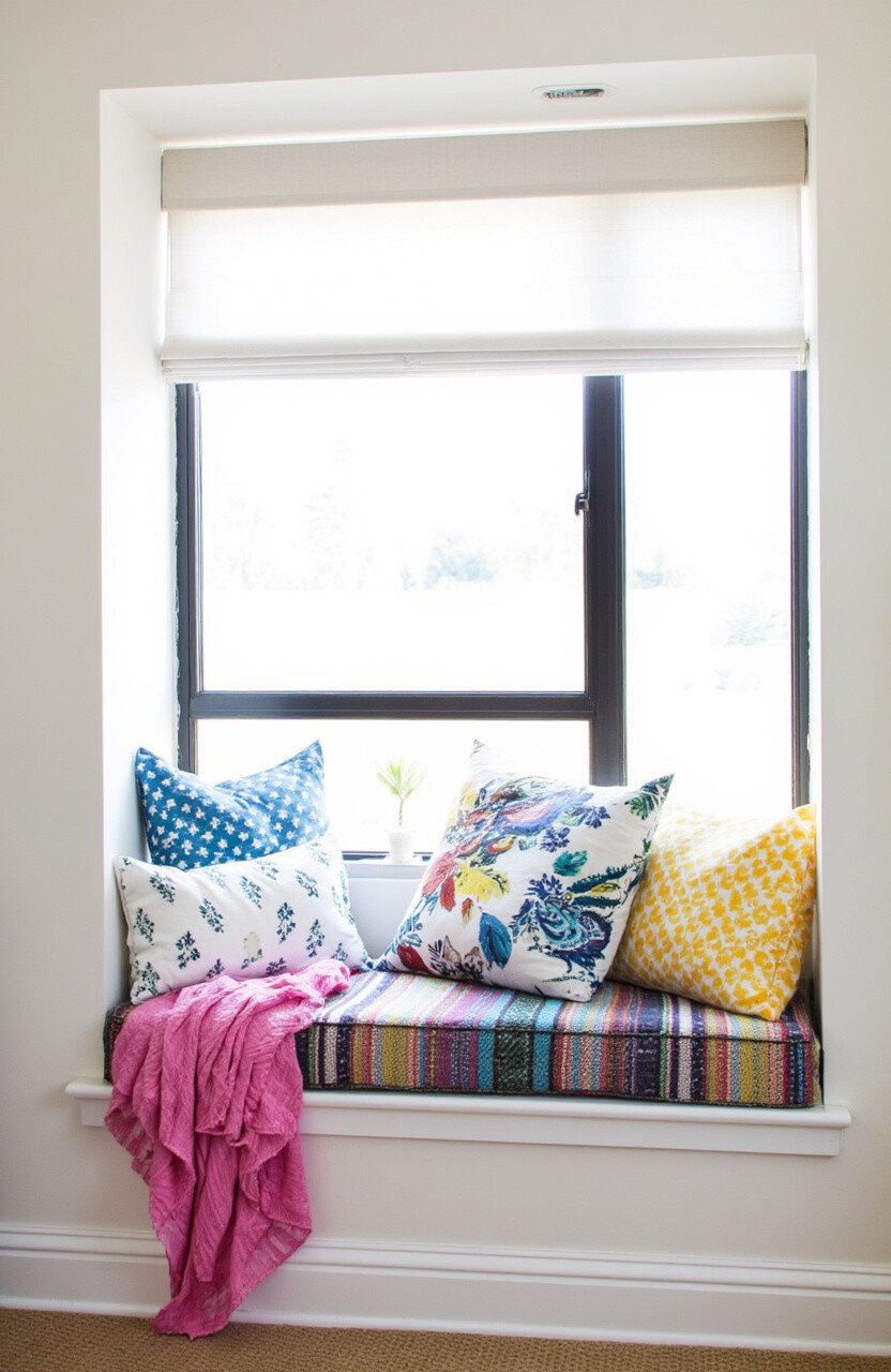 This idea makes any window seat more inviting. It’s perfect for reading nooks or quiet corners. Plus, it’s an affordable way to refresh your space.
