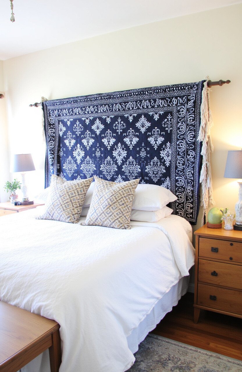 Use a batik throw to create a unique headboard. It’s a creative way to add personality to your bedroom. Choose a pattern that complements your bedding.