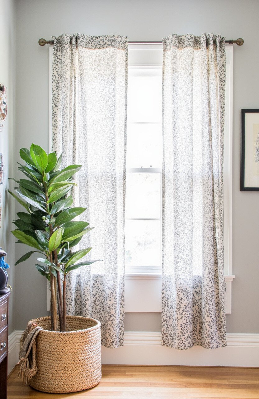 This idea adds a soft, artistic touch to your windows. You can change it out whenever you want to refresh your space. Use curtain rings or clips to hang it effortlessly.