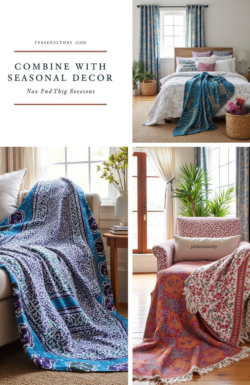 Rotate your batik blanket with the seasons by incorporating seasonal decor. In winter, pair it with warm colors and earthy tones.
