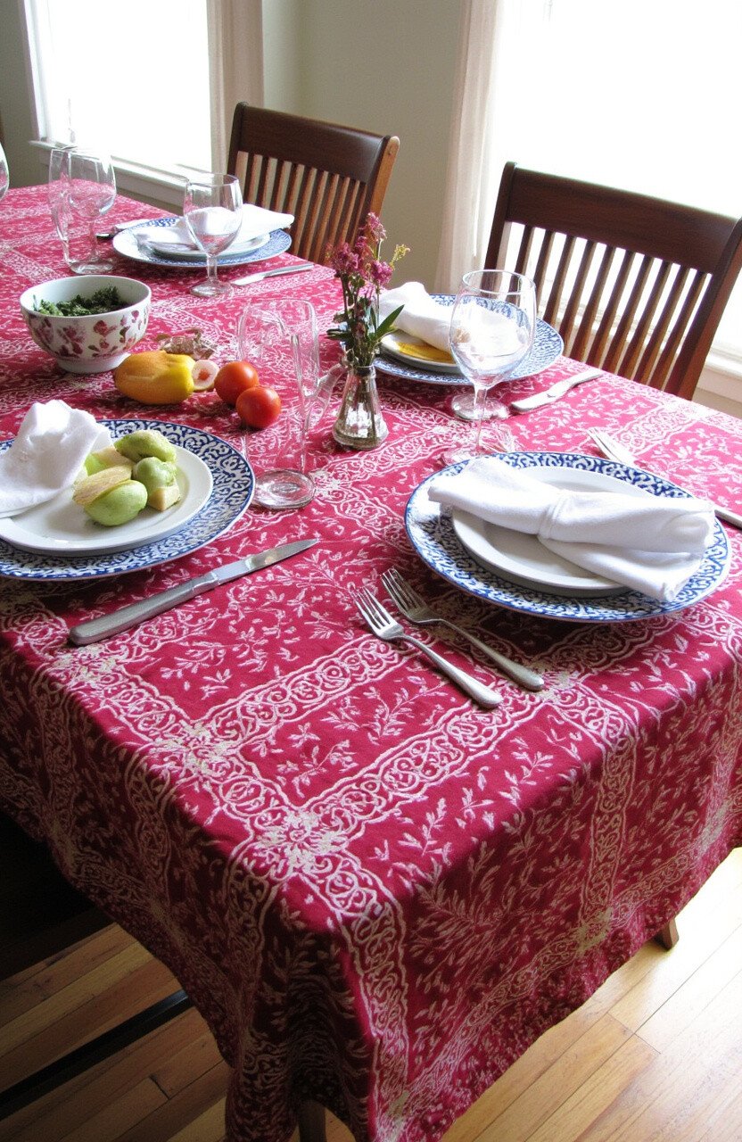 Transform your dining experience by using your batik blanket as a tablecloth. The intricate designs can set the stage for an unforgettable meal.