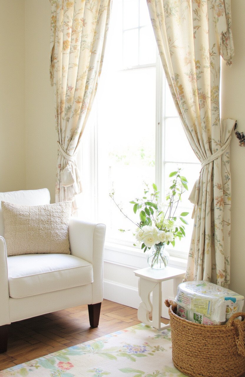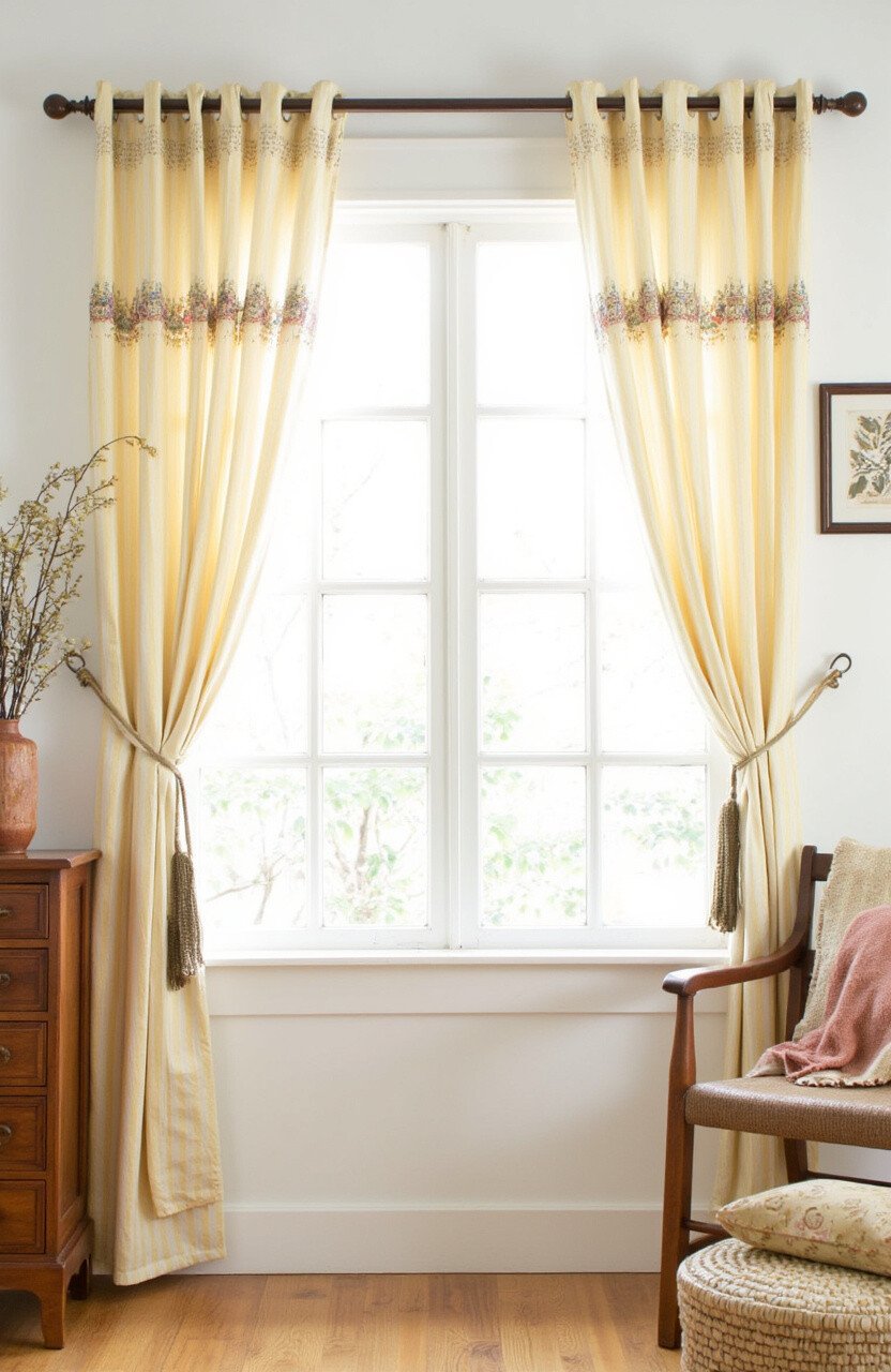 For a cozy cottage feel, choose batik curtains in soft, warm colors with simple patterns. Think creamy whites, soft yellows, and gentle stripes.