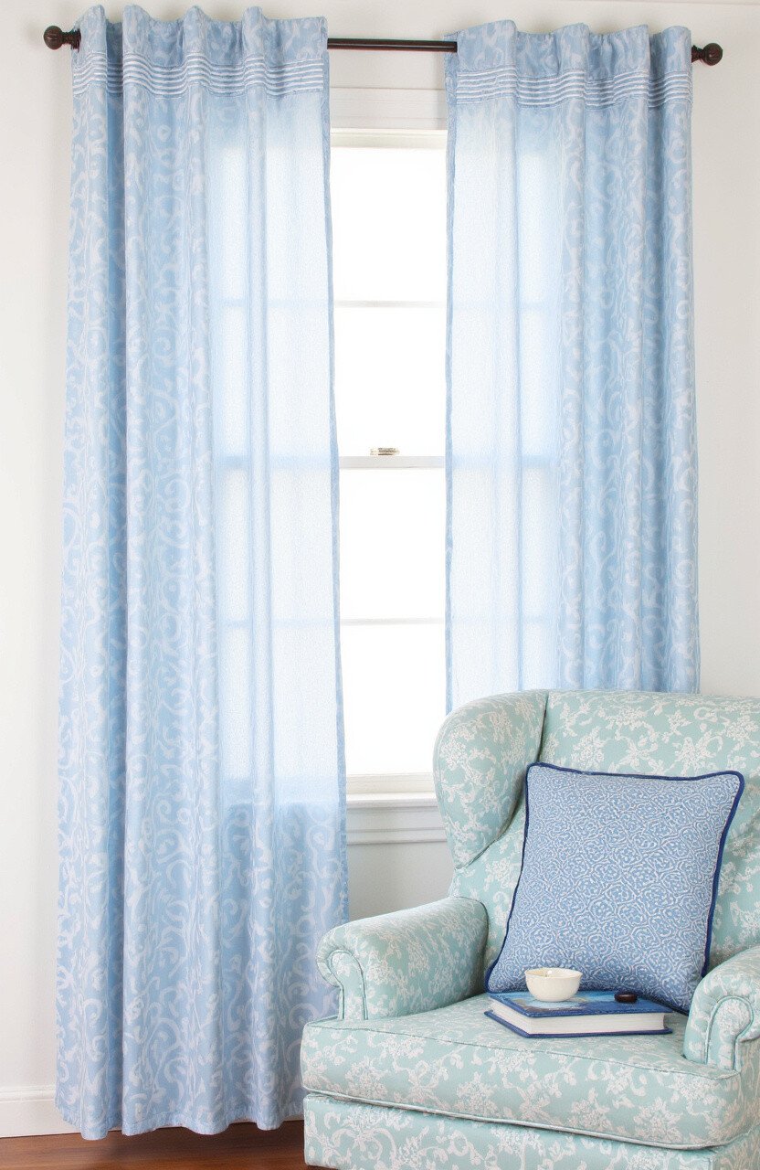 Feel the ocean breeze with batik curtains in cool blues and whites. The patterns can mimic the gentle waves of the sea, bringing a calming effect to your room.