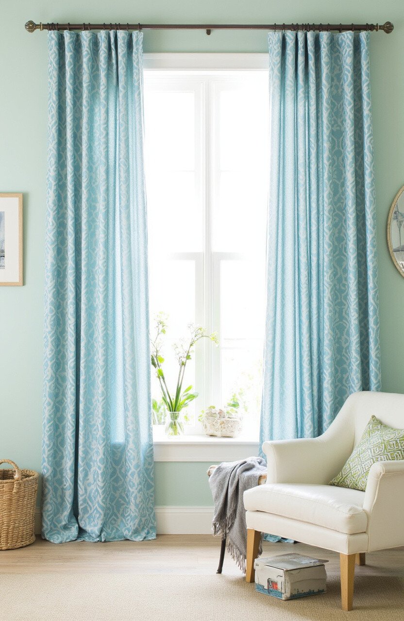 Create a serene sanctuary with batik curtains in calming blues and greens. Imagine a peaceful retreat right in your home.