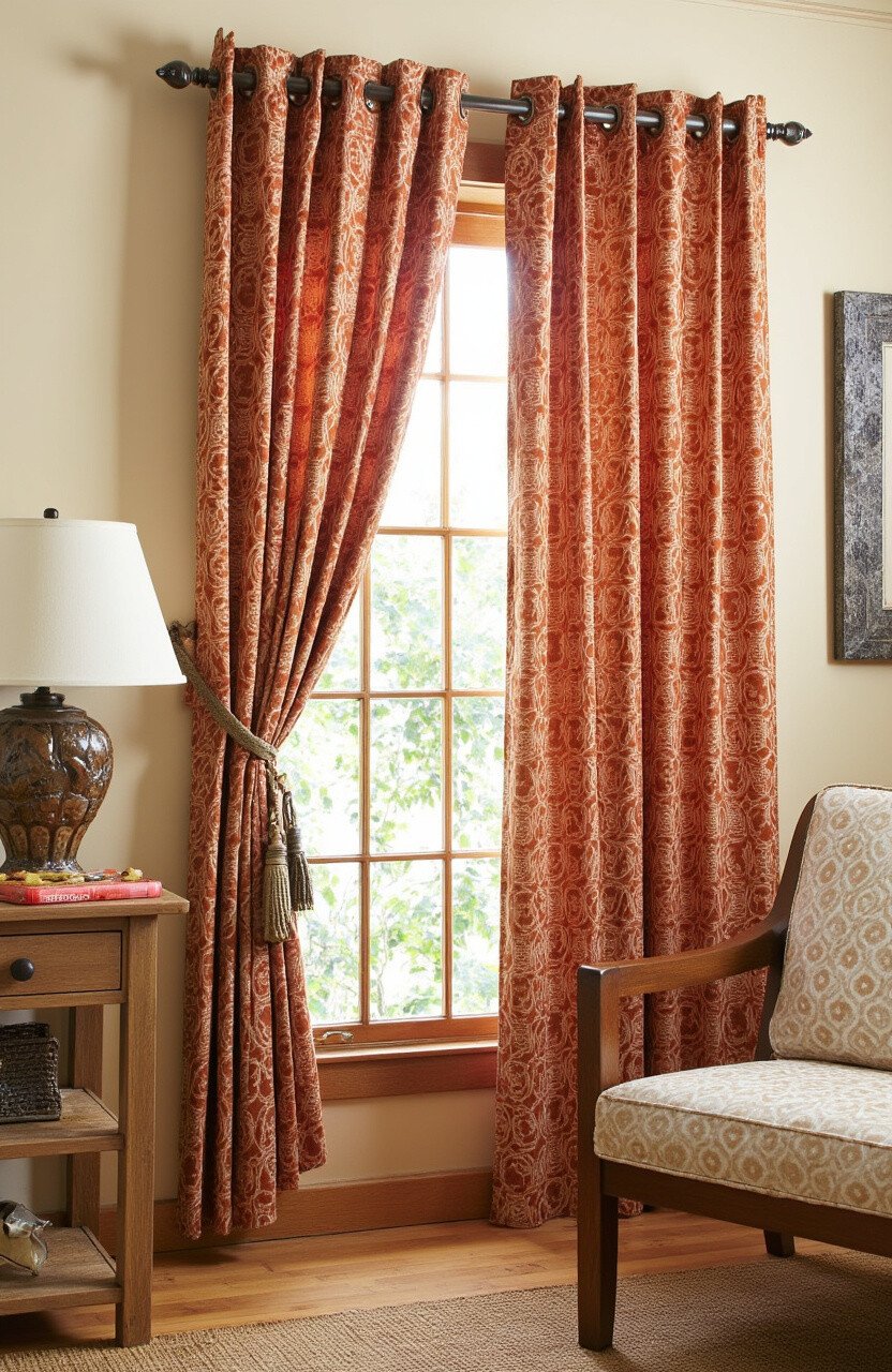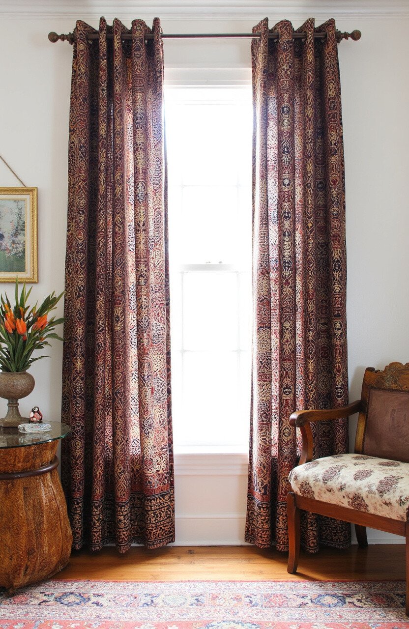 If you love the cozy, warm feel of rustic decor, batik curtains in earthy, muted tones are for you. Think terracotta, ochre, and deep moss greens.
