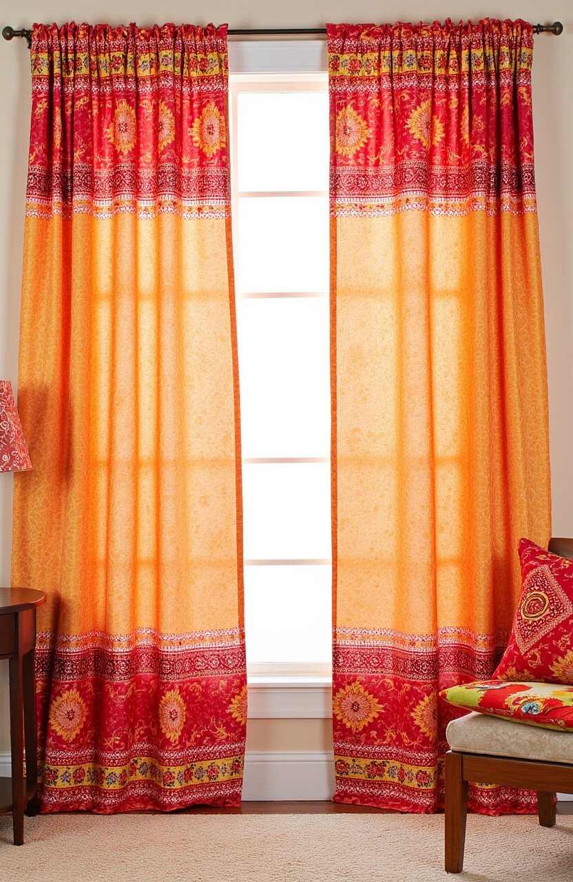 Celebrate with batik curtains in bright, festive colors. Think vibrant oranges, reds, and yellows.