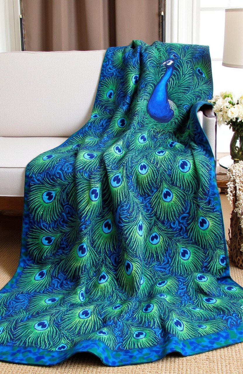 The peacock is a symbol of beauty and grace. A blanket featuring peacock feathers in rich blues and greens can add an air of elegance to any room.