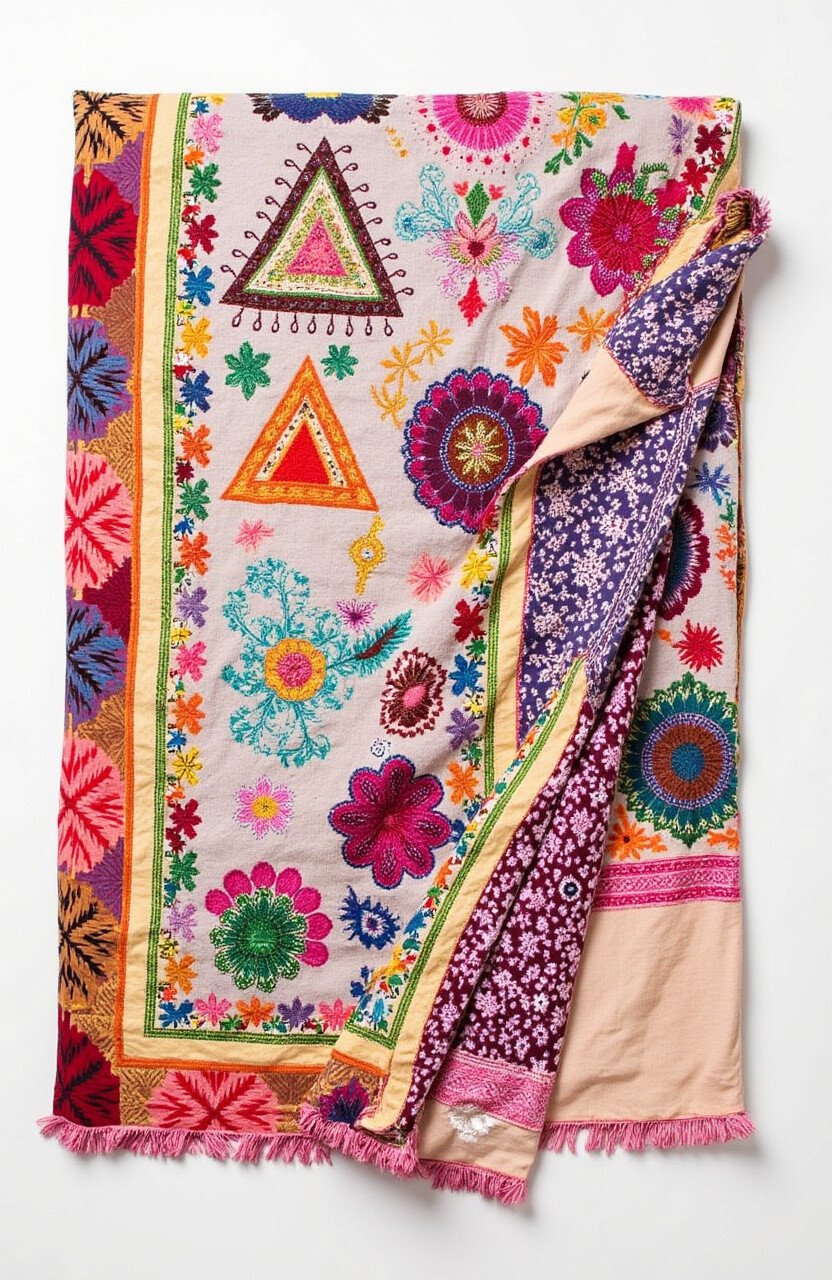 Embrace your free spirit with the Bohemian Dream Throw. Its vibrant batik patterns and eclectic embroidery create a tapestry of color and creativity.