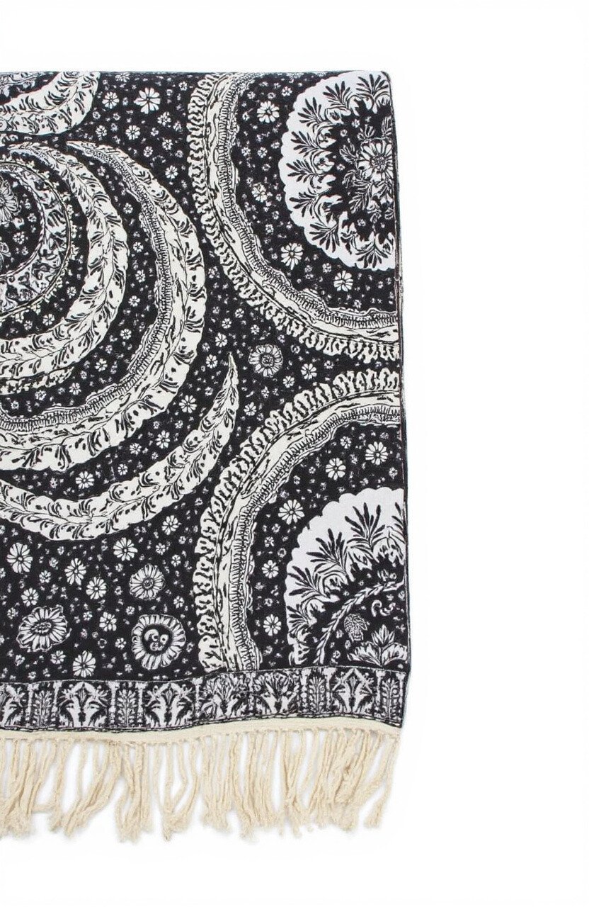 For a sophisticated and versatile addition to your home, the Monochrome Magic Throw is the perfect choice. Its black and white batik patterns create a classic and elegant look.