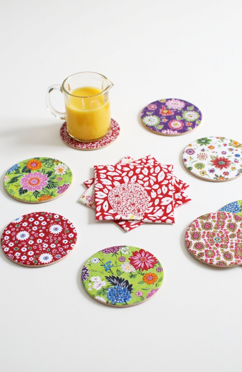 Protect your surfaces with batik fabric coasters. These small details can add a pop of color to your coffee table.