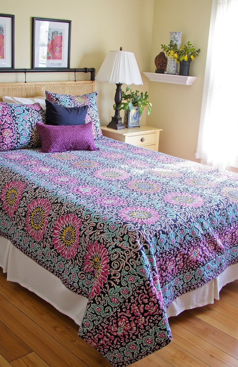 Transform your bedroom with a batik bedspread. The rich patterns and colors create a cozy and inviting atmosphere.