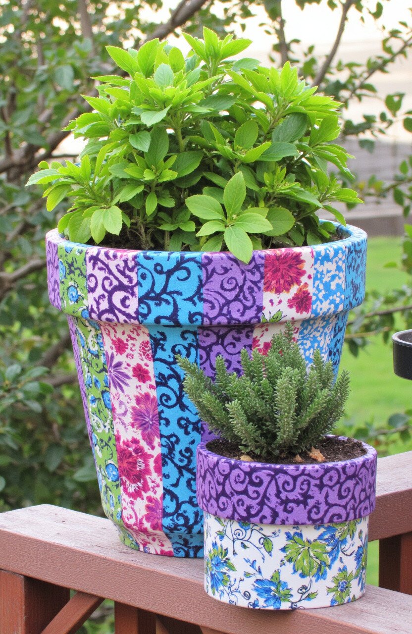 It’s an easy project that can bring new life to plain planters. Use waterproof glue to ensure durability and choose patterns that complement your greenery.