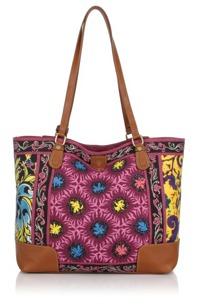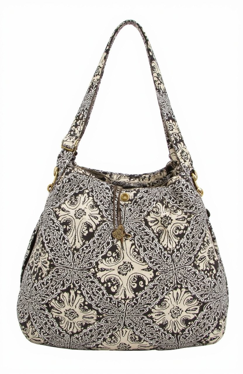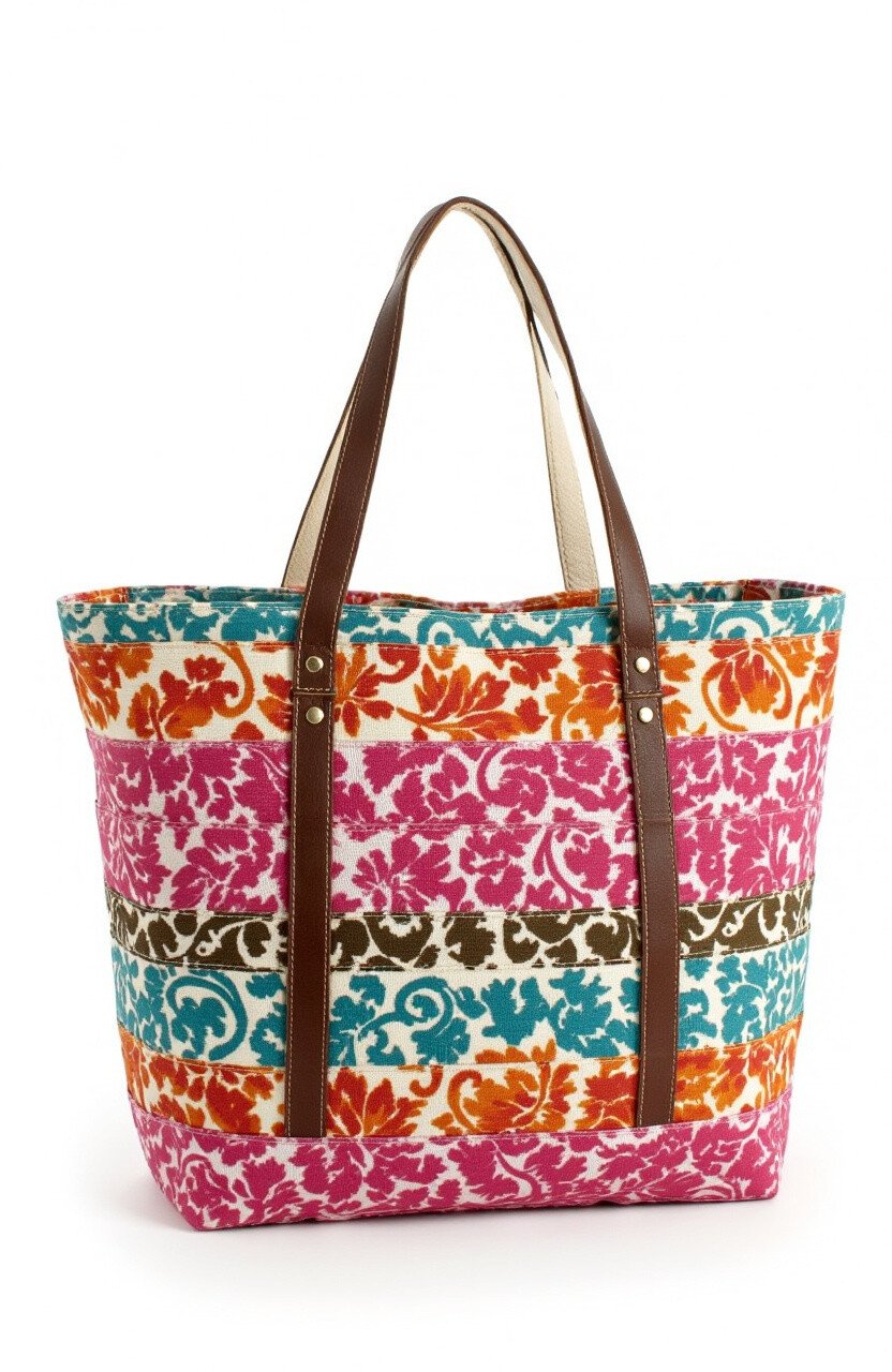 This canvas bag is a casual favorite. The sturdy material and lively batik patterns make it a great everyday choice.