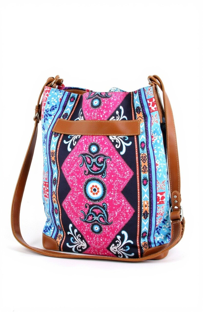 This bucket bag is for those who love to make a statement. The bright batik patterns and unique shape set it apart from the rest.