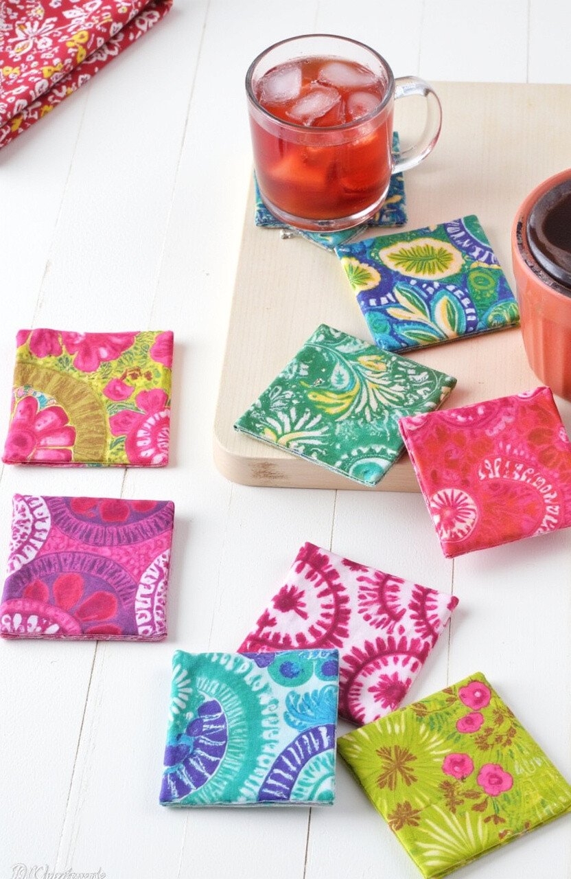 You can make a set in less than an hour. These coasters are perfect for gifts or as a housewarming present. Mix and match patterns for variety.