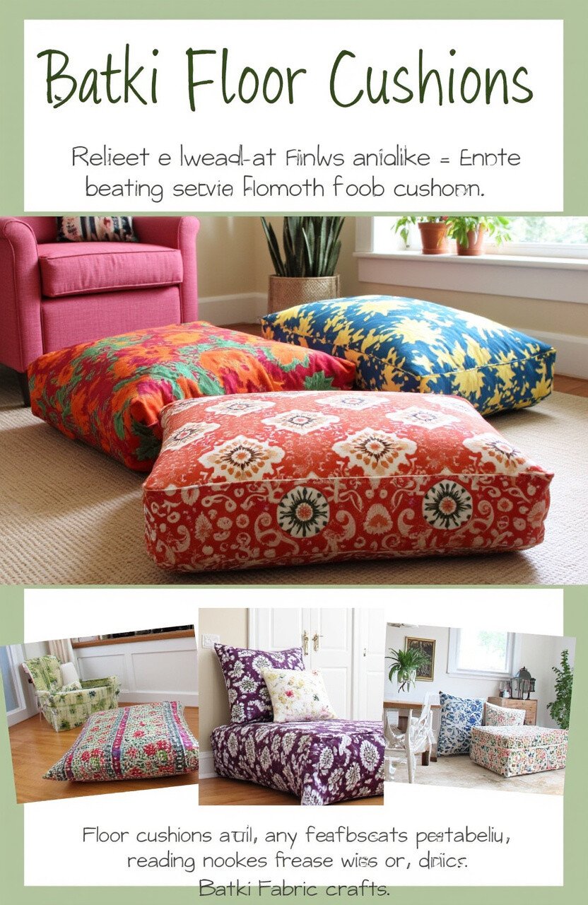 Floor cushions are easy to sew and customize. Mix different patterns for an eclectic look. They’re perfect for reading nooks or extra seating for guests.