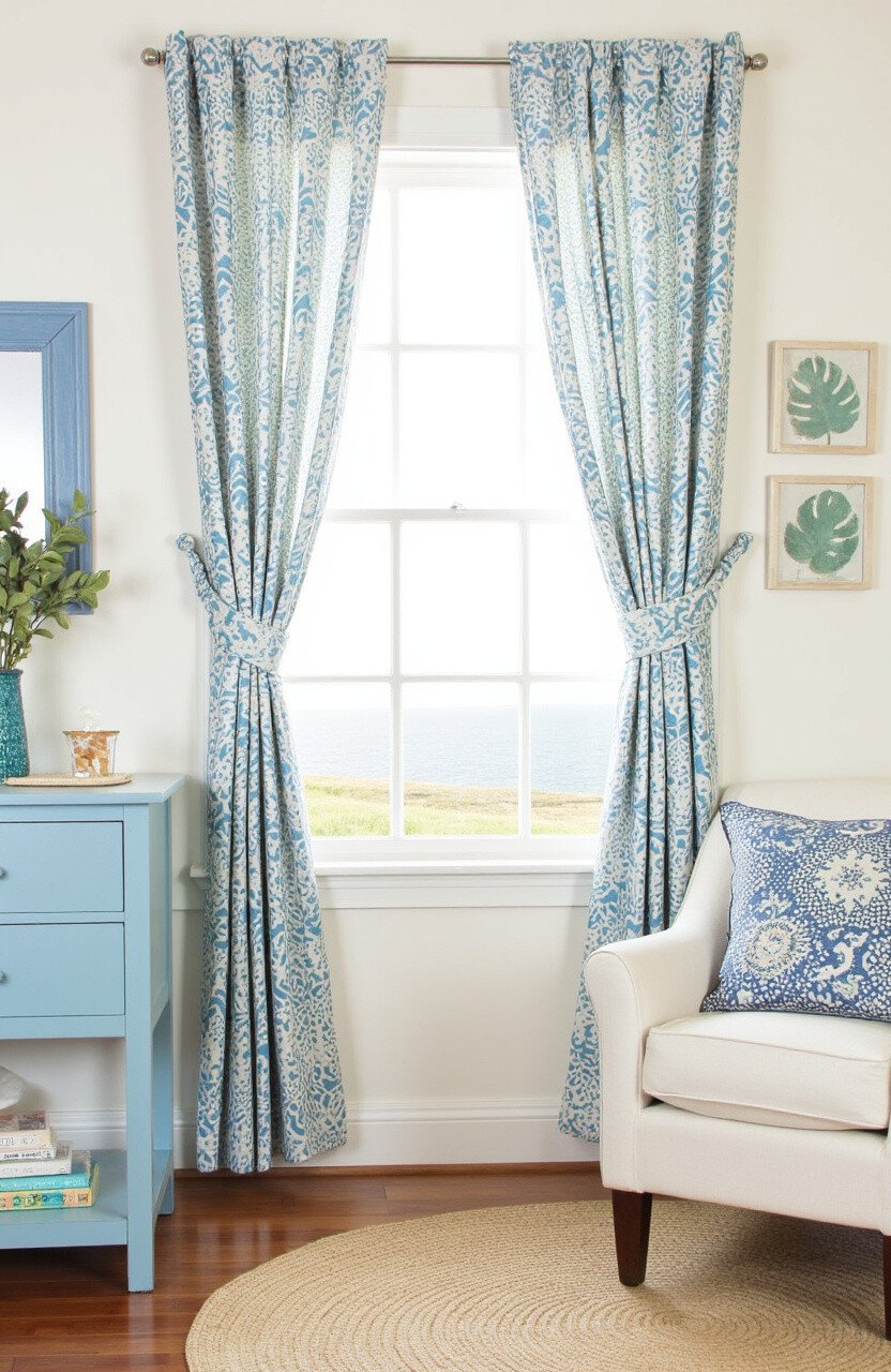 Bring the ocean home with batik curtains in cool blues and sandy beige. These colors can evoke the feeling of the sea breeze and salty air. Perfect for a coastal-themed room.