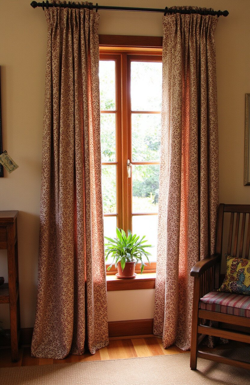 Rustic batik curtains in earthy tones can bring warmth and coziness to any room. Think about the combination of rich browns and soft yellows, crafting an inviting atmosphere. These hues mimic the beauty of nature, making you feel closer to the earth.