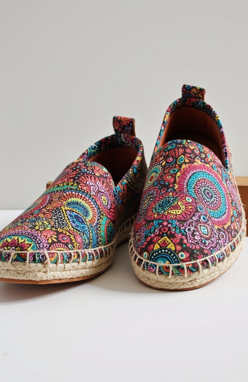 Find your zen with mandala batik espadrilles. These intricate designs are all about peace and tranquility. They’re perfect for yoga classes or a meditation retreat.