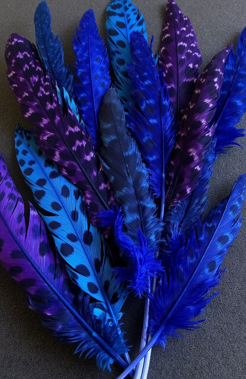 Mystical night feathers are deep and mysterious. Dark blues and purples create a celestial vibe.