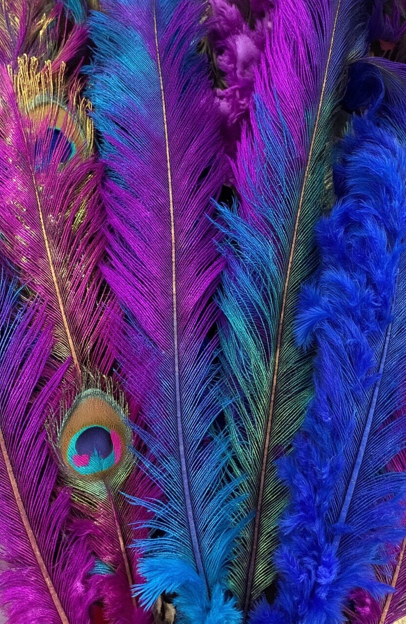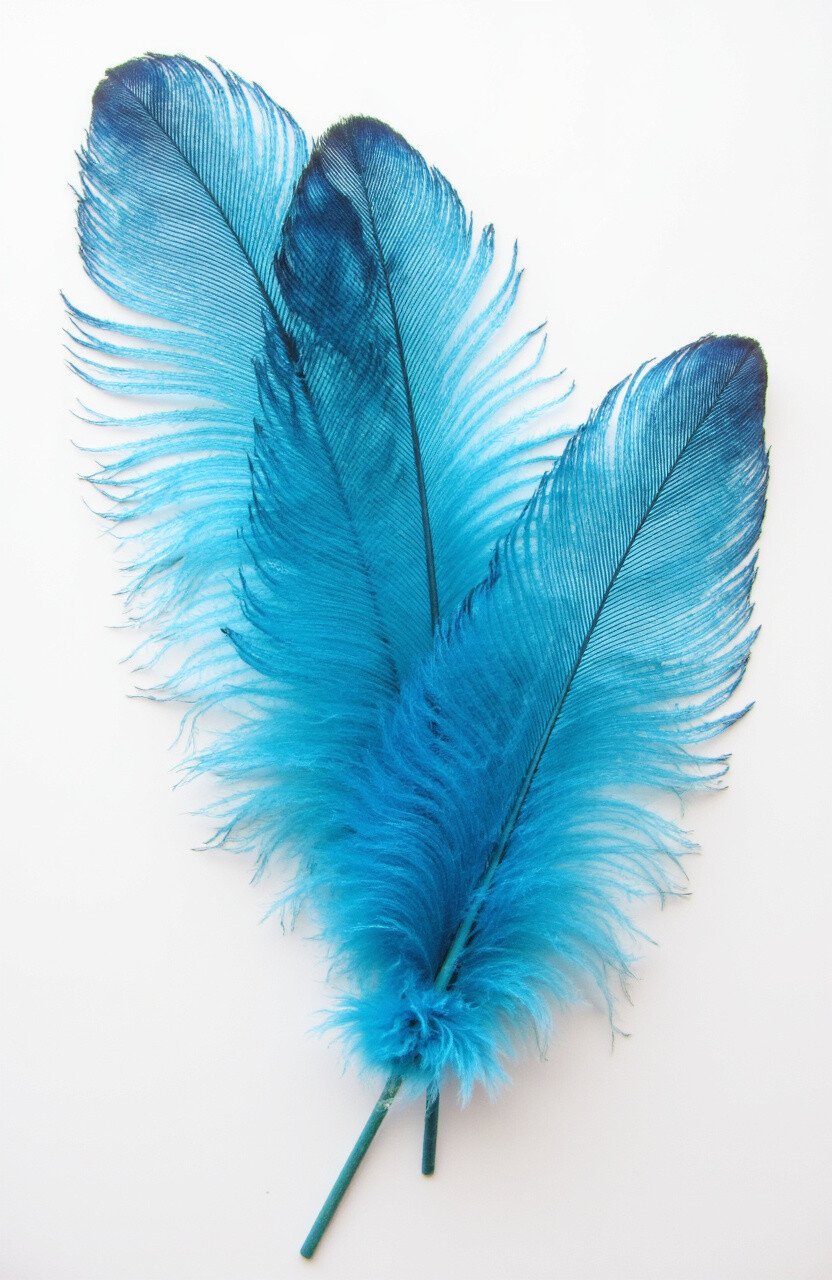 Ocean wave feathers bring the calming essence of the sea. Shades of blue and turquoise swirl like ocean waves.