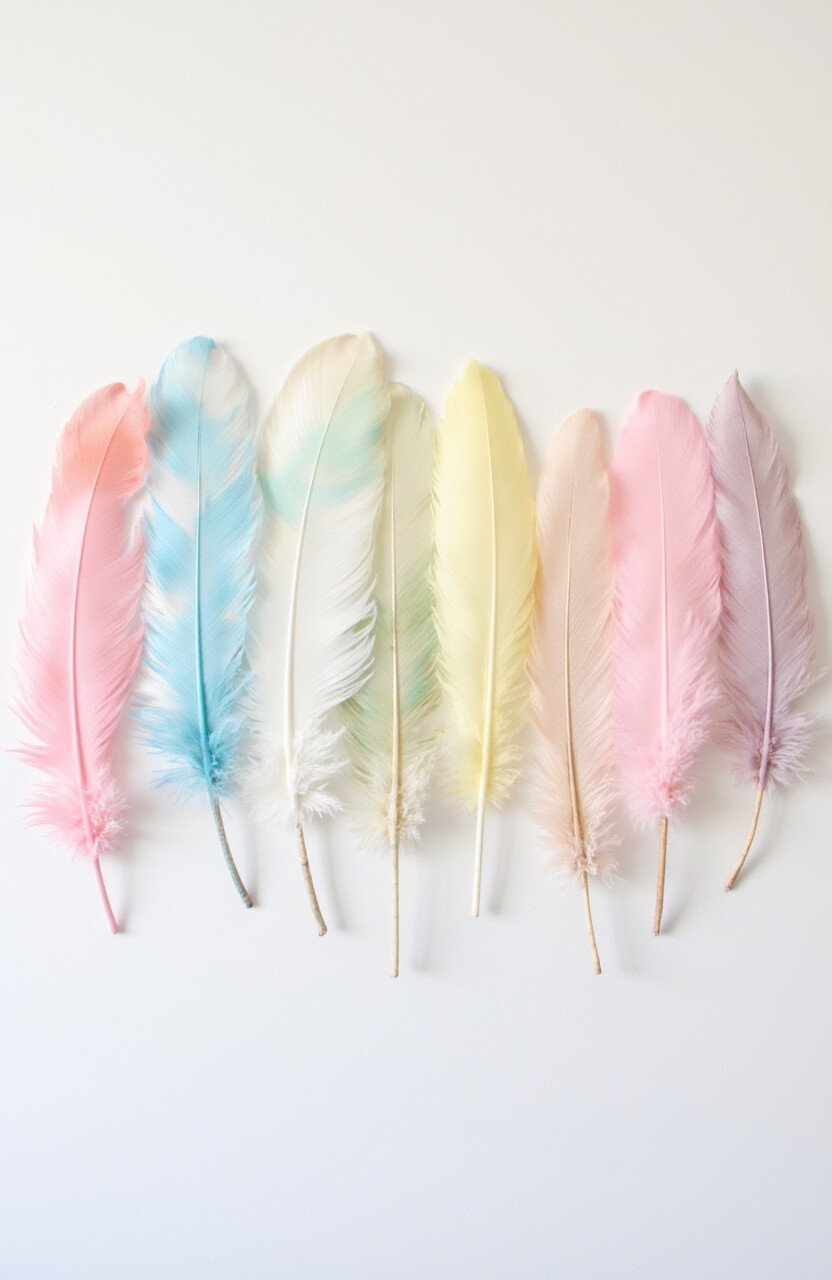 Pastel dream feathers are like a gentle breeze on a spring day. Soft pinks, blues, and yellows create a soothing palette.