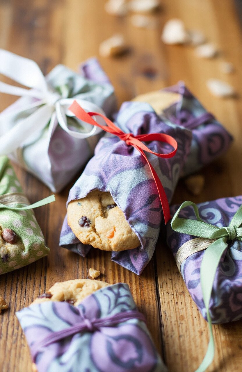 Wrap homemade cookies in batik for a charming touch. The fabric adds warmth and charm to the gift.