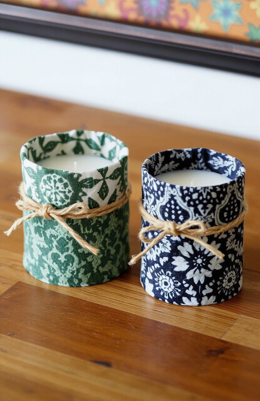 Dress up candles with intricate batik fabric. The patterns add a cozy, inviting feel perfect for home décor gifts.