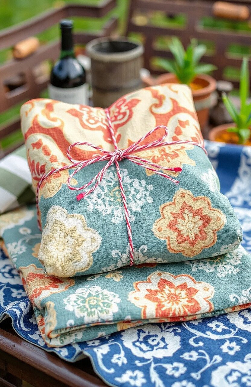 Wrap picnic blankets in batik for a rustic touch. The fabric adds warmth and charm to the gift.