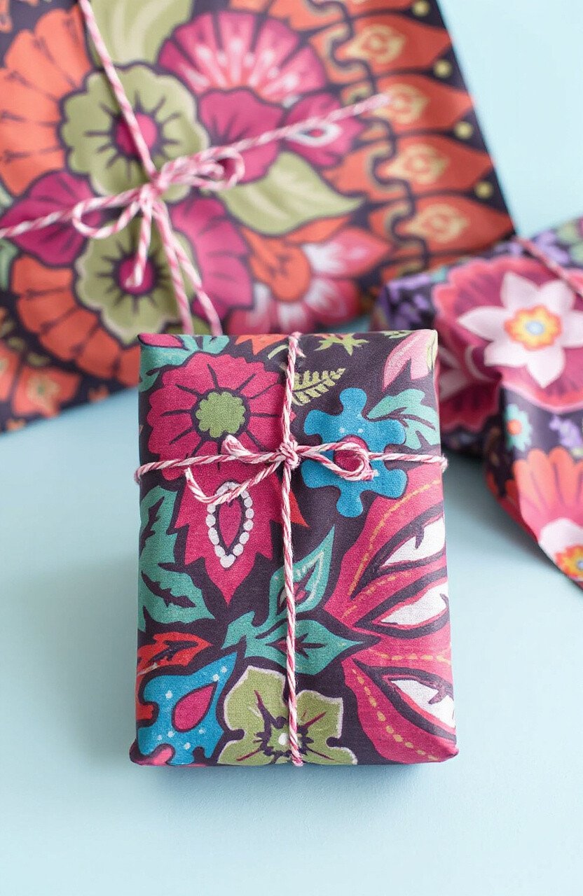 Wrap craft kits in batik for a whimsical feel. The fabric’s patterns inspire creativity and make the gift feel special.