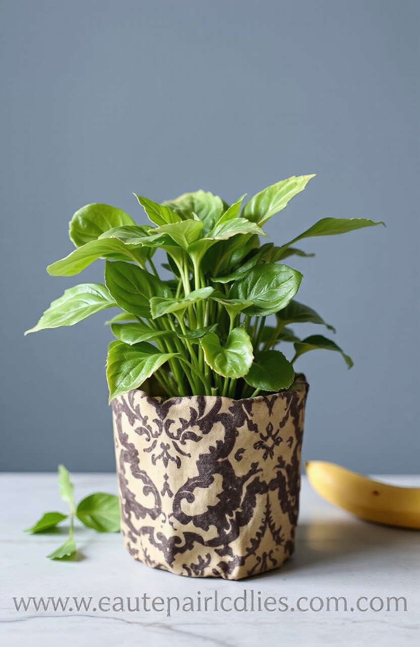 Wrap plant holders in batik for a decorative touch. The patterns bring a splash of color to any setting.