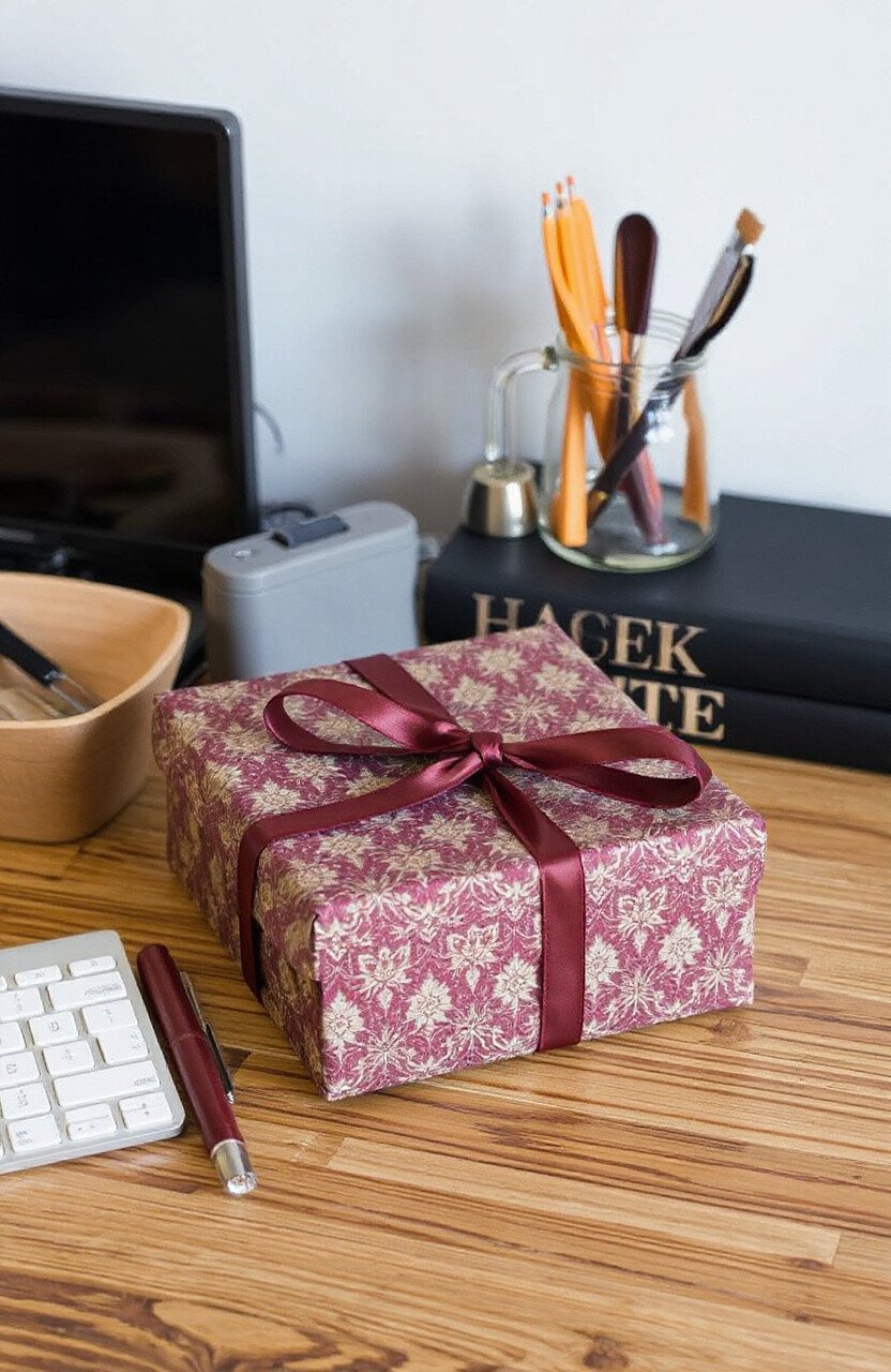 Wrap desk organizers in batik for an elegant touch. The fabric adds a sophisticated feel to the gift.