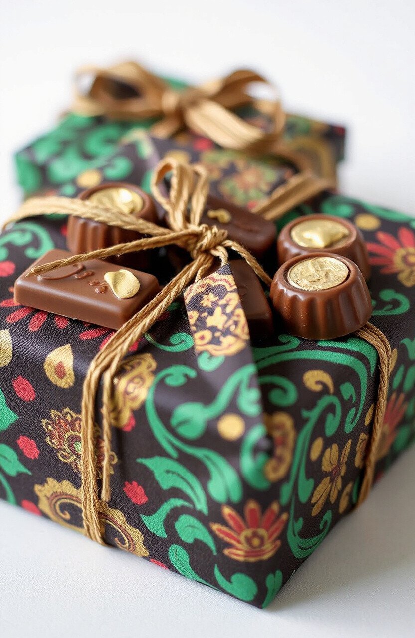 Make chocolates extra special by wrapping the box in batik. The luxurious patterns enhance the gift’s decadent appeal.