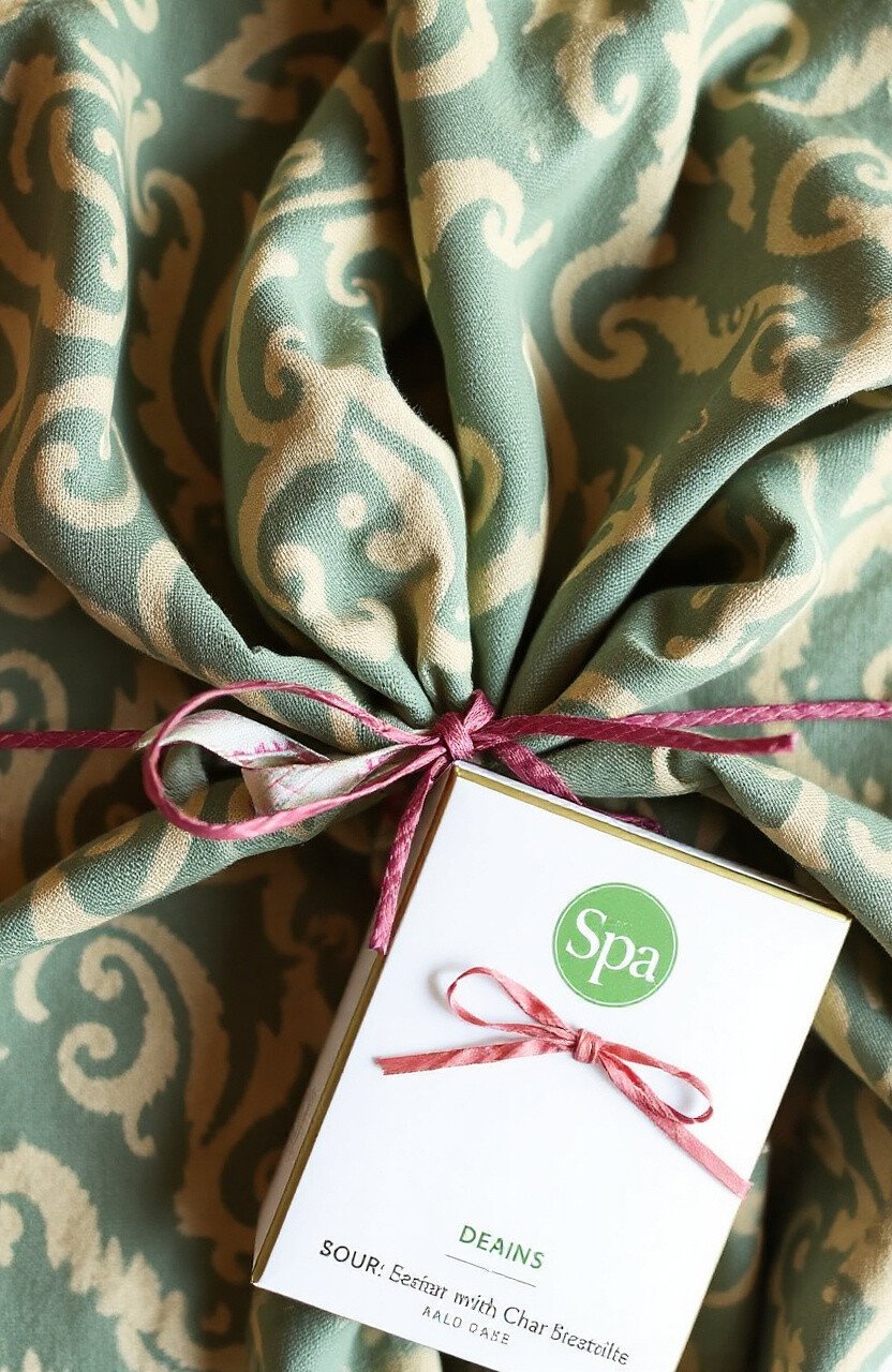 Wrap spa gifts in batik for a luxurious touch. The fabric adds a layer of sophistication to the gift.