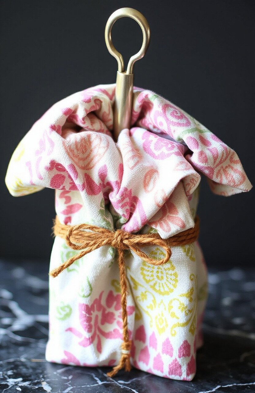 Secure with a ribbon, and you’ve got a classy gift. This method is not only unique but also eco-friendly, as the fabric can be reused.