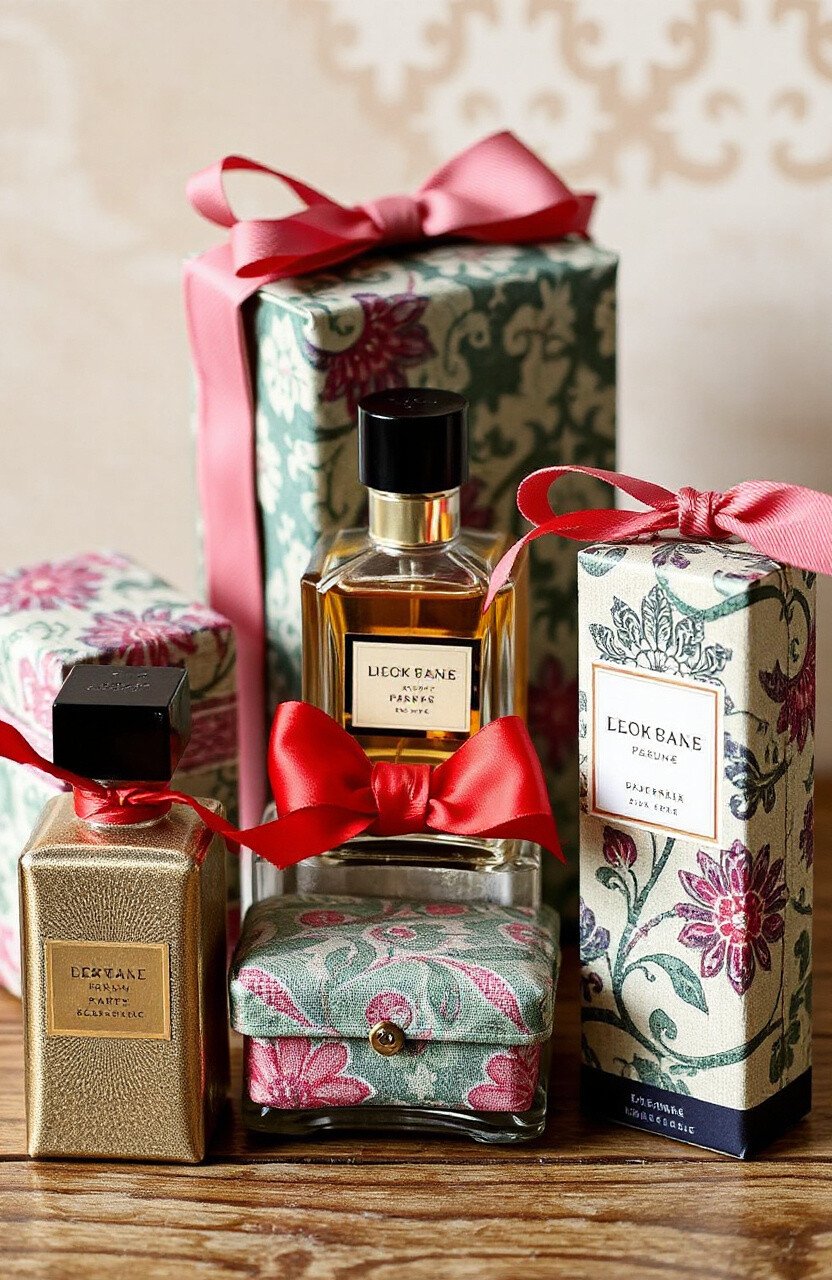 Enhance perfume gifts by wrapping them in batik fabric. The elegant patterns add a touch of luxury.