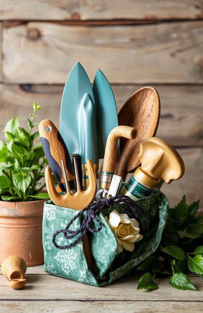 Wrap garden tools in batik for an enchanting presentation. The fabric’s patterns add a magical touch.
