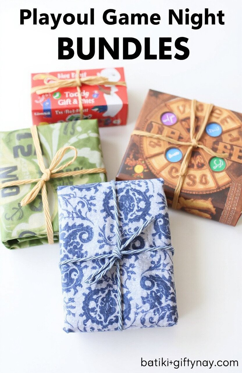 Wrap board games in batik for playful presentation. The fabric’s patterns add a sense of fun and excitement.