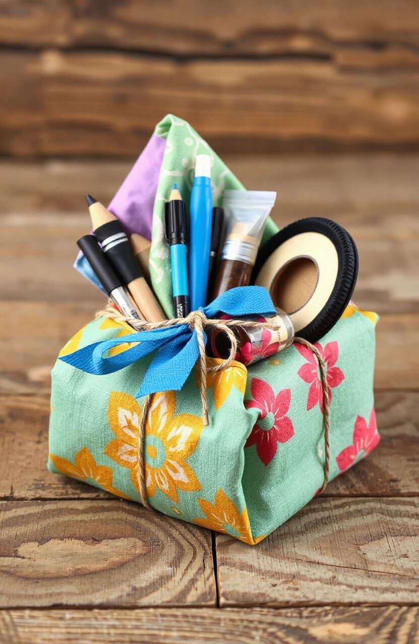 Wrap art supplies in batik for a whimsical touch. The patterns inspire creativity and make the gift feel special.