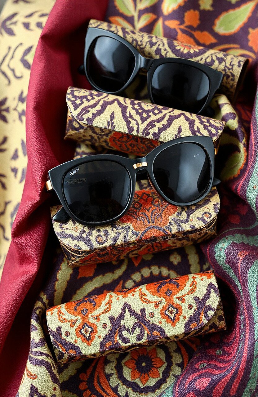 Wrap sunglasses cases in batik for a chic touch. The fabric’s patterns add a fashion-forward feel.