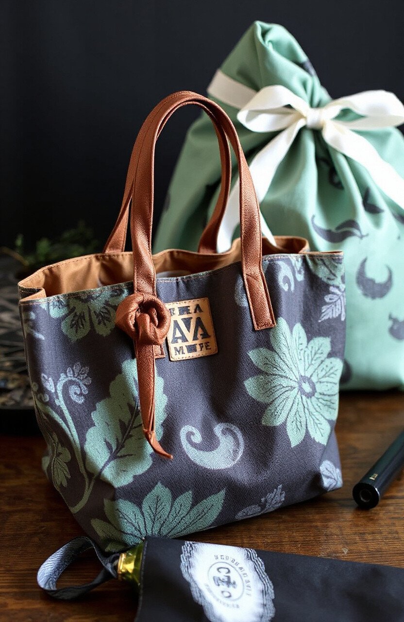 Wrap tote bags in batik for a stylish presentation. The fabric adds a fashion-forward touch.