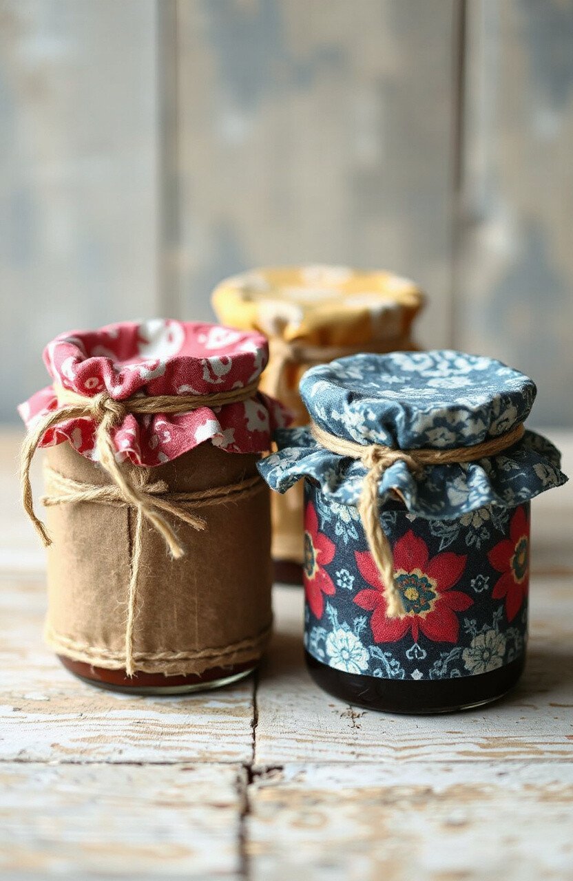 Wrap jam jars in batik for a rustic feel. The fabric adds warmth and charm to the gift.