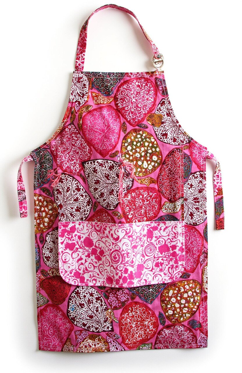 Cook in style with a Batik heart apron. It’s a fun way to bring color into the kitchen while keeping your clothes clean.