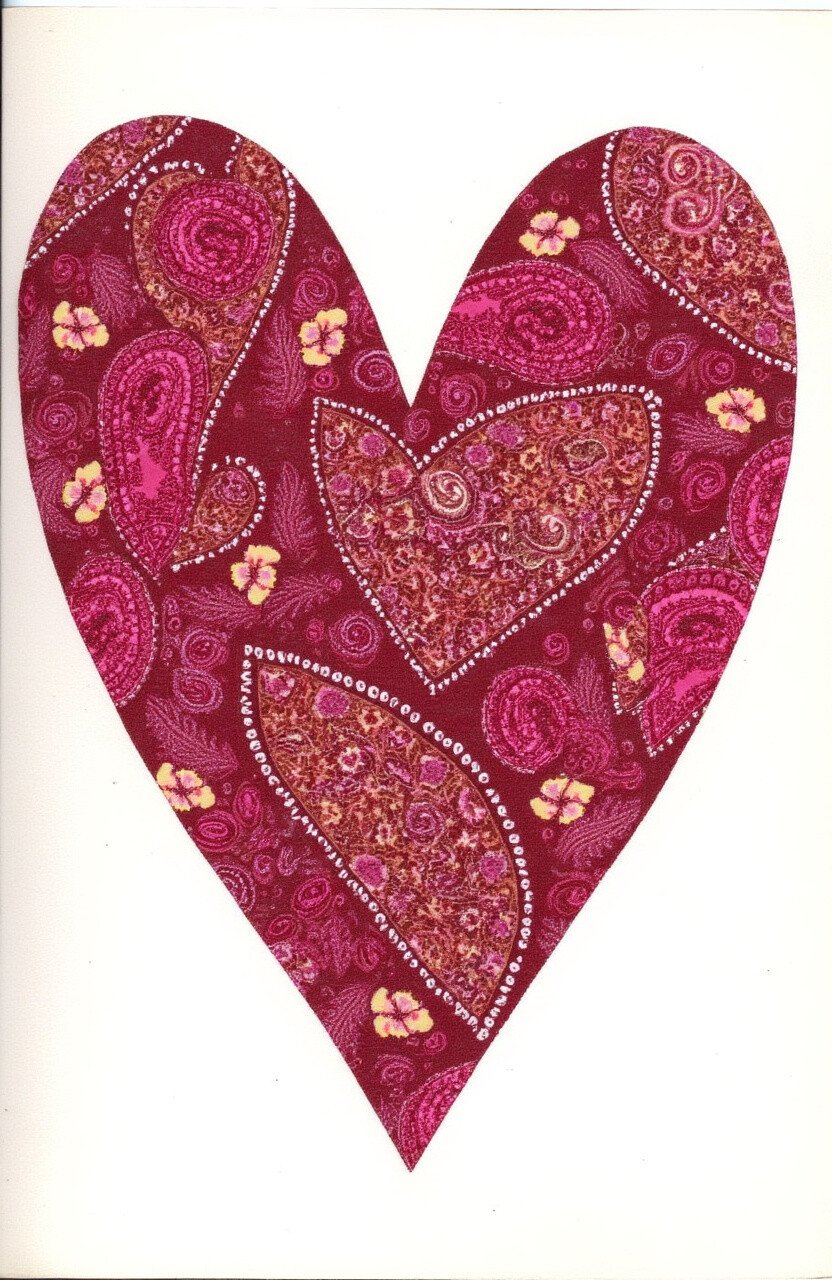 Send love with a Batik heart greeting card. These cards are not just a message but a piece of art.