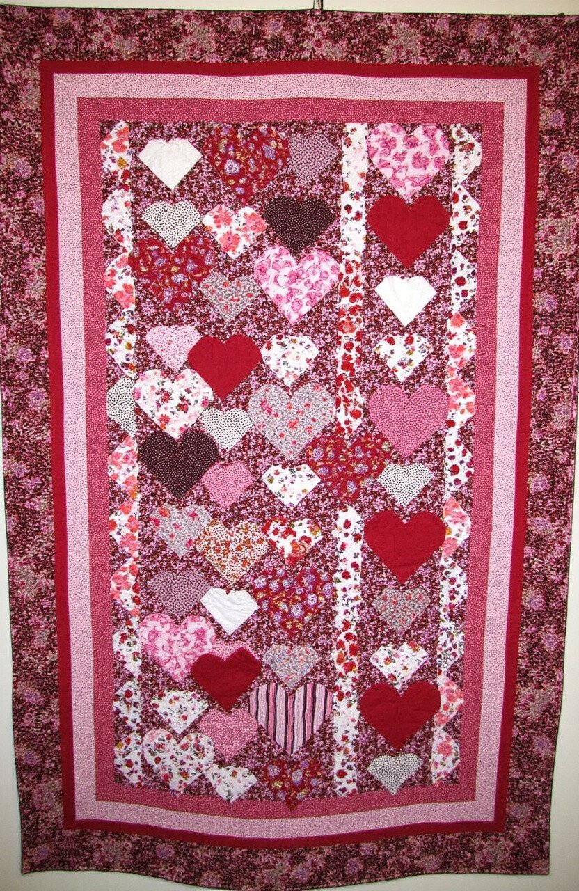 Each heart can be a different pattern, creating a mosaic of colors and shapes. It’s perfect for a cozy night in or as a beautiful bedspread.